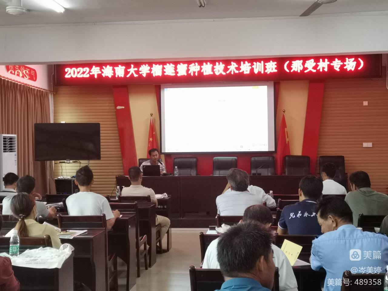 陈海涛站长根据多年从事榴莲蜜等热带水果种植、种苗繁育、销售和技术推广经验,以及具有丰富的农业科技服务和推与在座农户进行了分享,课堂上农户积极提问题,并与老师进行深入交流。