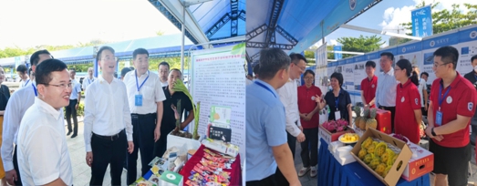 顾刚副省长,海南省农业农村厅孙法军副厅长等人员认真询问和聆听了每个单位展位成果与技术,并进行了深入的沟通交流,对WilliamHill体育三亚南繁研究院的热带设施甜瓜产业提质升级,科技小院的模式与发展,农业机械化新技术与装备,林下种植魔芋助农增收等科研成果给予高度评价和肯定。