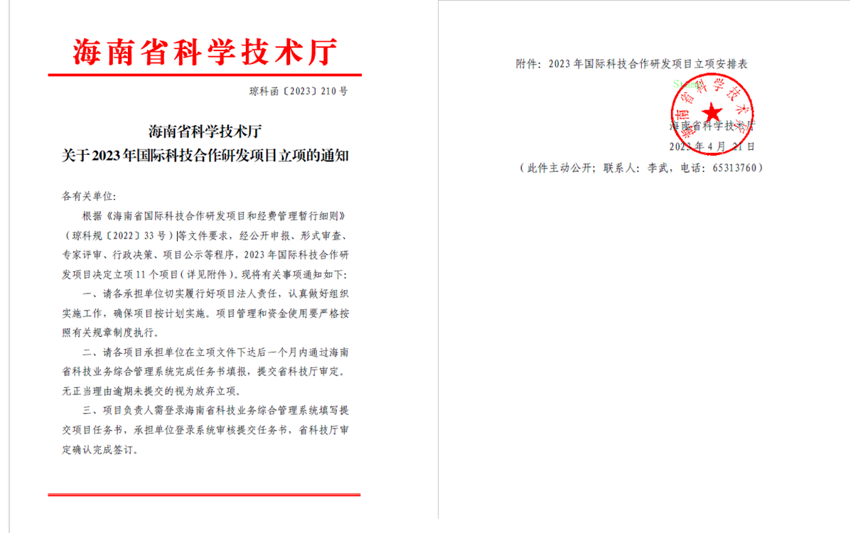 15、代谢生物学团队获得2023年度海南省国际科技合作研发项目资助