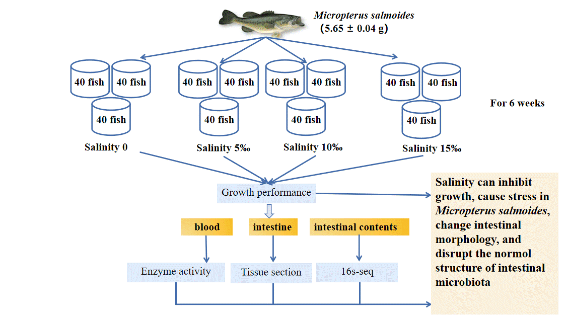 2、鱼类生殖与遗传团队揭示了不同盐度对幼年大口黑鲈(Micropterus salmoides)生长、健康、肠道微生物菌群的影响