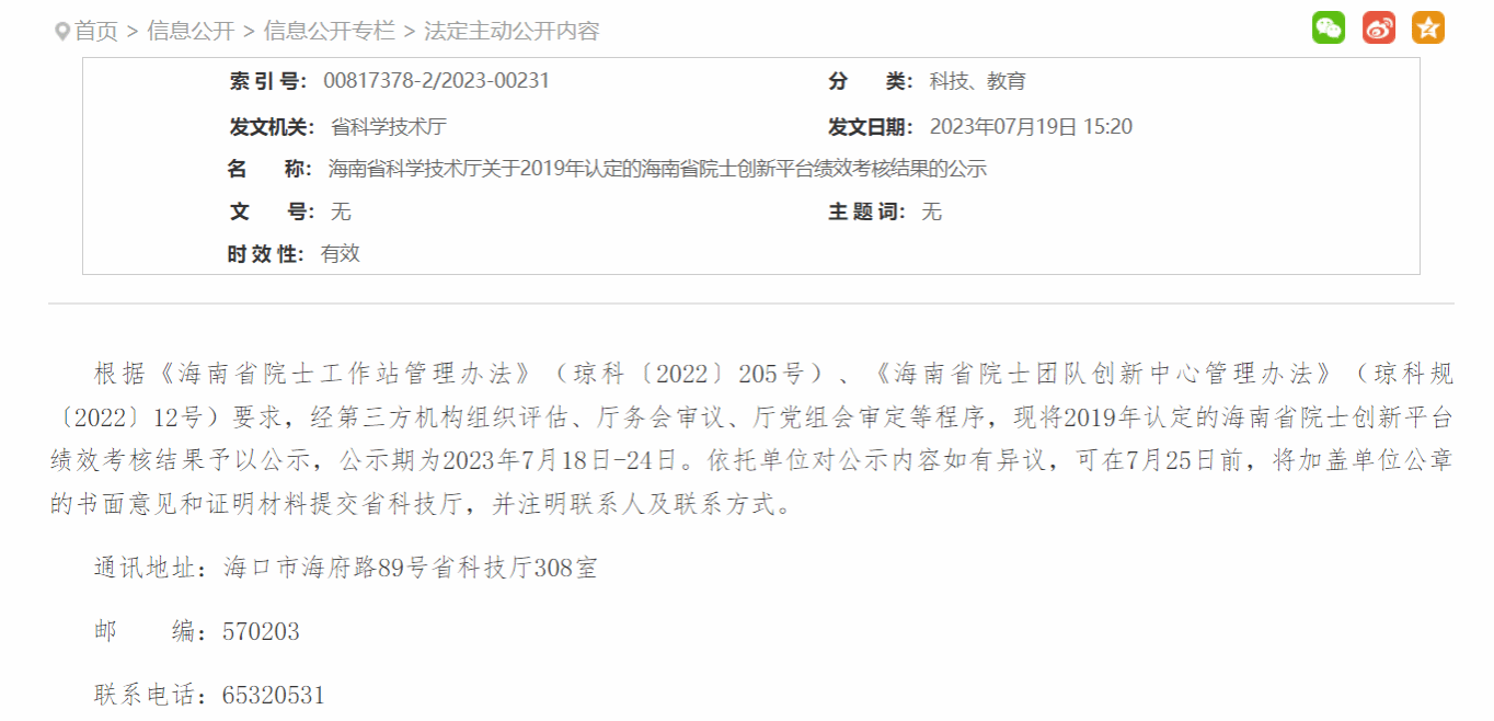 2023年7月18日,由热带耕地资源循环利用与耕地保育团队负责的海南院士团队创新中心,在海南省科学技术厅认定的海南省院士创新平台绩效考核中获得优秀。参加该考核的团队共计50个,其中有11个获评为优秀。