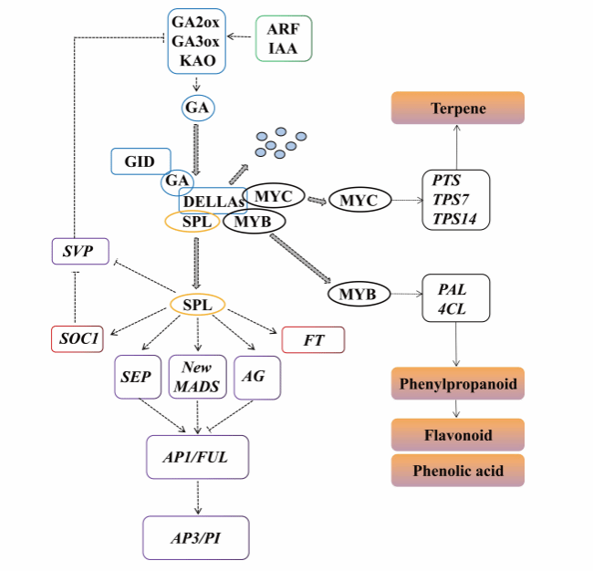 图4. 广藿香花发育的预测调控模式