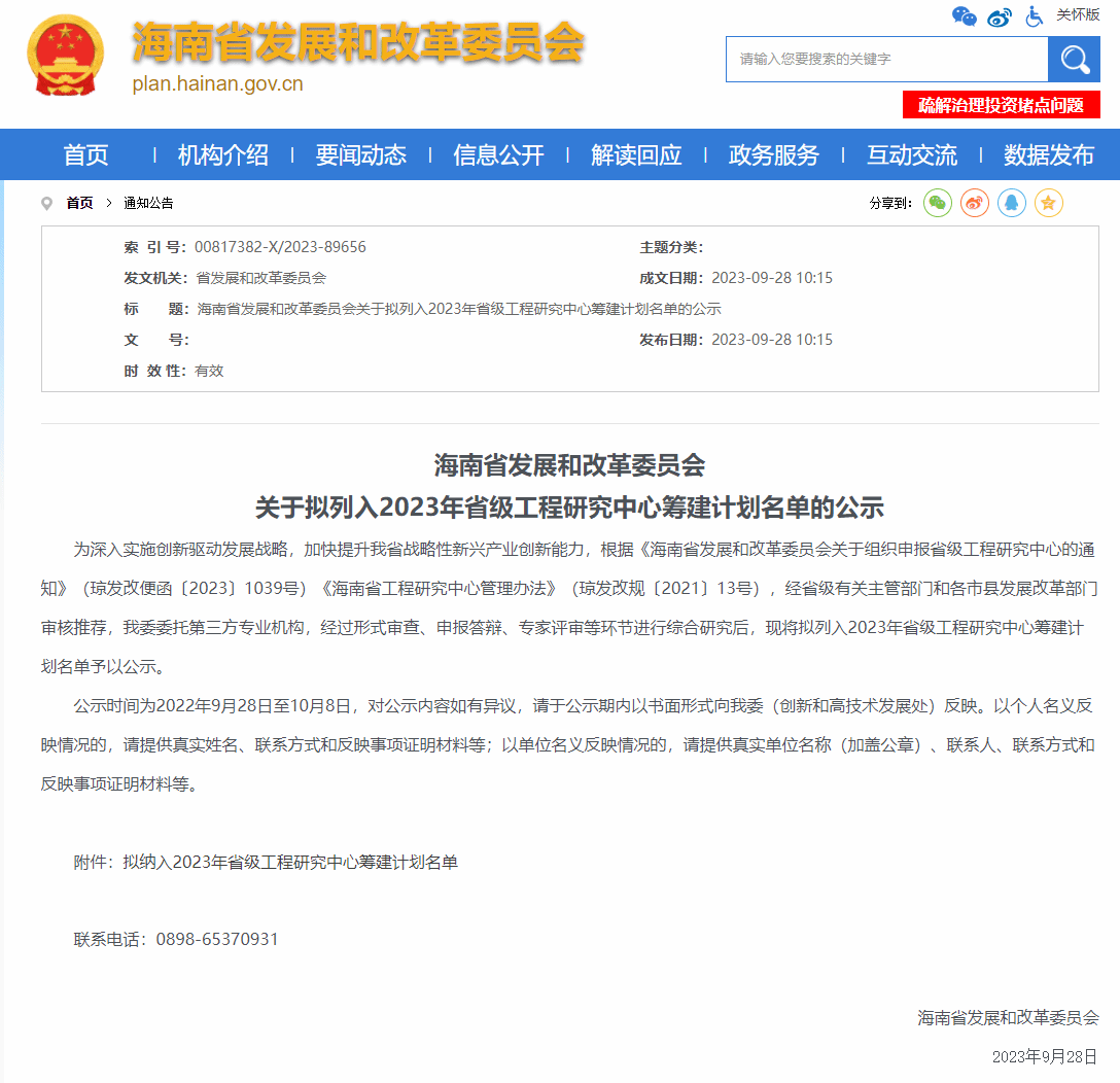 图18. 海南省发展和改革委员会公示信息