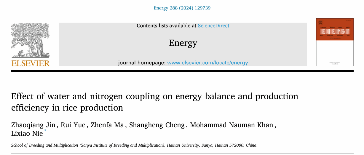 成果三:“水氮耦合对有色稻生产中能量平衡和生产效率的影响”,论文发表在中国科学院一区TOP期刊《Energy》上(DOI:10.1016/j.energy.2023.129739)。聂立孝教授为论文通讯作者,博士生金朝强为论文第一作者。