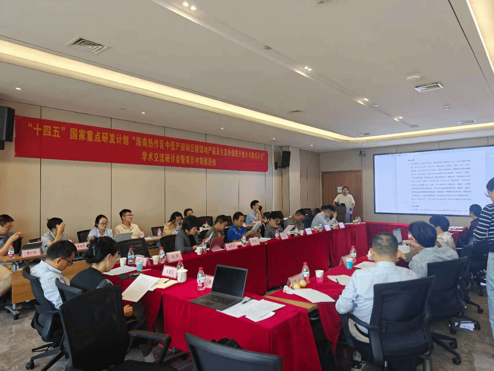 图2. 专家组成员五个课题负责人就中期进展进行了系统汇报。课题一聚焦海南中低产田划分及产能评价及原生酸性土壤酸化形成及障碍消减进行了汇报;课题二围绕土壤微生物-作物互作机制,开发了抑病高产的土壤培育技术与生物有机肥产品;课题三就地上-地下协同的多样化绿色种植技术新体系;课题四就农田系统养分承载力,提出了生态高值农业养分管理方案;项目总负责人及课题五负责人阮云泽教授则统筹全局,汇报了项目整体进展与技术集成示范思路,构建了“政产学研用”一体化的推广模式。