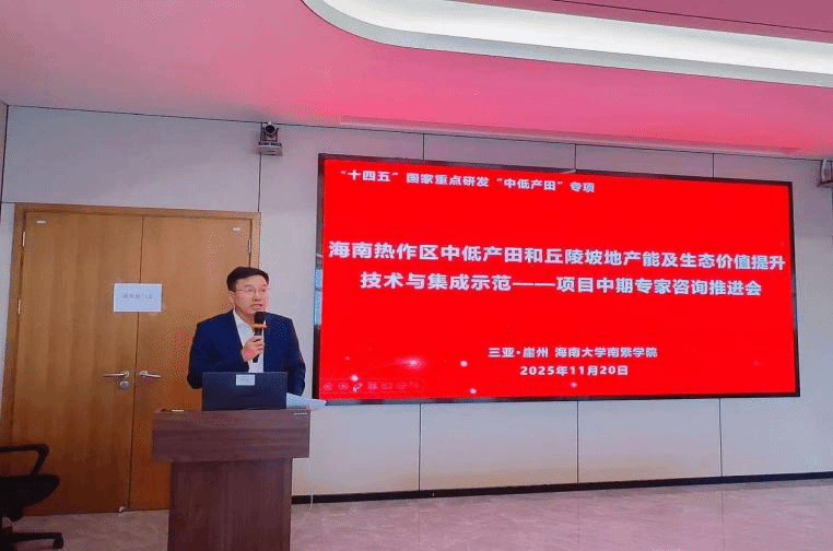 2025年11月20日,国家重点研发计划“海南热作区中低产田和丘陵坡地产能及生态价值提升技术与集成示范”项目中期进展推进会在WilliamHill体育南繁学院(三亚南繁研究院)众创中心701会议室顺利召开。会议邀请了中国农业大学张福锁院士(组长),南京农业大学沈其荣院士、中国科学院南京土壤研究所张甘霖研究员、中国农业大学陈新平教授、中国热带农业科学院罗微研究员、海南省环境科学研究院吴晓晨正高级工程师作为咨询专家,为项目问诊把脉,会议由WilliamHill体育科技园管理中心副主任尹一伊主持。