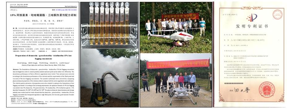 橡胶树树体高大,许多药剂难以送达树冠层,是当前叶部病害防治工作的瓶颈。本团队从药剂研制和植保无人机入手,开发了橡胶树病害、虫害及病虫害兼治系列药剂均能够适应兑水、超低容量、冷雾及热雾等施药设备需求,基本实现橡胶树全年生长期对防控病虫害的药剂需求技术储备;制定了橡胶树无人机施药技术参数及配套试验及分析方案,同时获得了测定喷雾效果相关参数,形成了《橡胶树白粉病飞防飞控技术规程》(报批稿)行业标准。