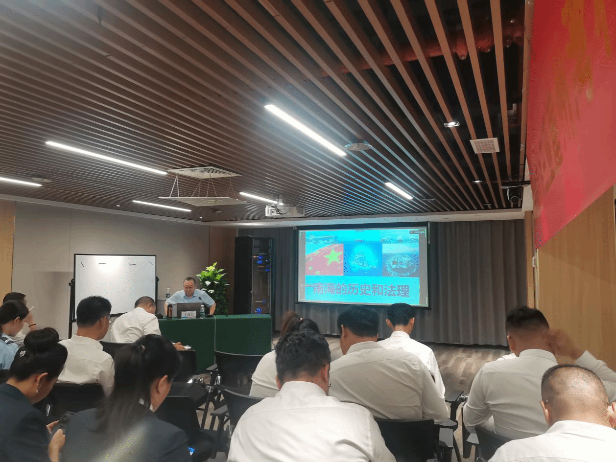 讲座上,王克宏结合自身丰富的工作经历,运用详实的资料、生动的图片、震撼人心的视频,深入讲解了南海的历史和法理,通过深入的理论分析、丰富的案例实践,使参会党员进一步了解了南海相关知识、南海争端的背景和始末,对我国维护国家领土的决心和策略有更深层次的认识。