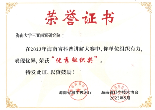 5月13日,2023年海南省科普讲解大赛圆满收官。本次比赛由海南省科学技术厅、海南省科学技术协会主办,中国热带农业科学院香料饮料研究所承办。以“热爱科学 崇尚科学”为主题,旨在通过科普讲解大赛在全社会普及科学知识、倡导科学方法、传播科学思想、弘扬科学精神,激发全社会创新创业活力,让科技发展成果更广泛的惠及和服务人民。在省内赛中,我院荣获2023海南省科普讲解大赛“优秀组织奖”。