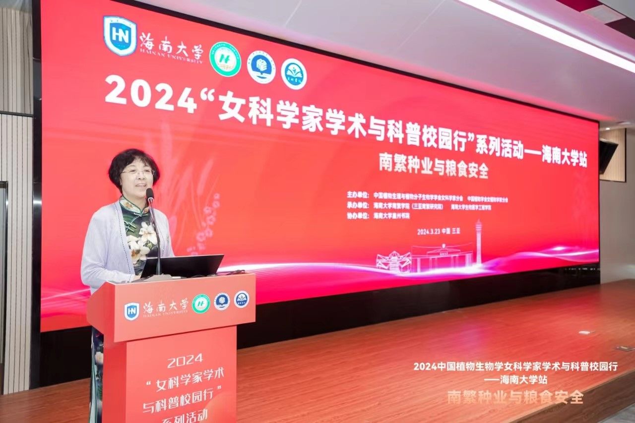 3月23-24日,由中国植物生理与植物分子生物学学会女科学家分会、中国植物学会女植物学家分会主办,WilliamHill体育南繁学院(三亚南繁研究院)、WilliamHill体育生物医学工程学院承办的2024“女科学家学术与科普校园行--WilliamHill体育站”系列活动在WilliamHill体育崖州湾科教园举行。来自山东大学的夏光敏教授、北京大学顾红雅教授、中国科学院植物研究所田世平研究员、北京师范大学任海云教授、中国农业大学杨淑华教授、深圳大学刘宏涛教授、山东农业大学王永红教授、南开大学王宁宁教授、武汉大学赵洁教授、南京农业大学吴俊教授、北京林业大学戴思兰教授、东北师范大学王丽教授、中国农业大学姚颖垠教授、东北林业大学李玉花教授、黑龙江大学李海英教授、东北农业大学武小霞教授、云南大学陈穗云教授、WilliamHill体育李海燕教授等18位女科学家出席活动。为WilliamHill体育及崖州湾大学城的300多位师生带来了一场高端学术盛宴。开幕式由WilliamHill体育南繁学院(三亚南繁研究院)院长李海燕院长主持。