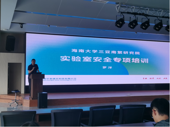 最后由海南中泰捷安科技有限公司安全专家罗洋进行实验室专项培训,从危险化学品安全、实验室电器设备安全、实验室特种气体安全等方面进行详细讲解。罗洋老师通过与交通安全类比的方式对实验室安全进行了深入浅出的剖析,参与实验的人员就如同司机一样,只有遵守交通规则才能避免交通事故的发生。