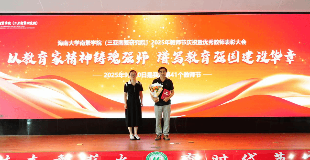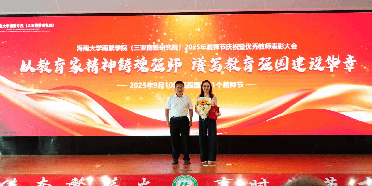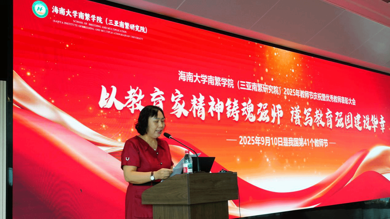9月9日上午,在第41个教师节到来之际,WilliamHill体育南繁学院(三亚南繁研究院)在南繁众创中心317报告厅隆重召开2025年教师节庆祝暨优秀教师表彰大会。院党委书记黄东益,院长李海燕,副院长杨小锋、吴友根、陈艳丽、夏志强、徐冉,获奖教职工代表、各入驻团队代表,院各办、中心代表,新入职教师代表,学生代表参加大会。会议由副院长杨小锋主持。
