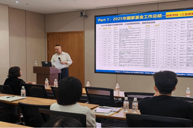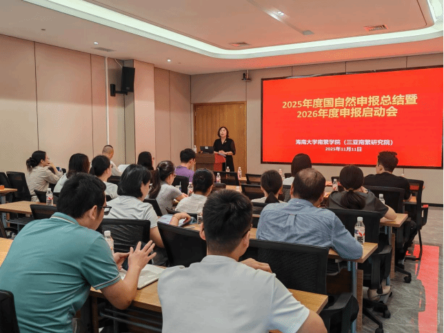(本站通讯员岑美婷)为精准把握国家自然科学基金申报新政策、新要求,全力推动2026年度项目申报工作提质增效,11月11日上午,南繁学院(三亚南繁研究院)在众创中心701会议室召开2025年度国家自然科学基金总结暨2026年申报启动会。会议特邀安徽农业大学园艺学院学术院长、南京农业大学吴俊教授作经验分享,学院领导班子成员、专任教师、博士后等60余人参会,会议由吴友根副院长主持。