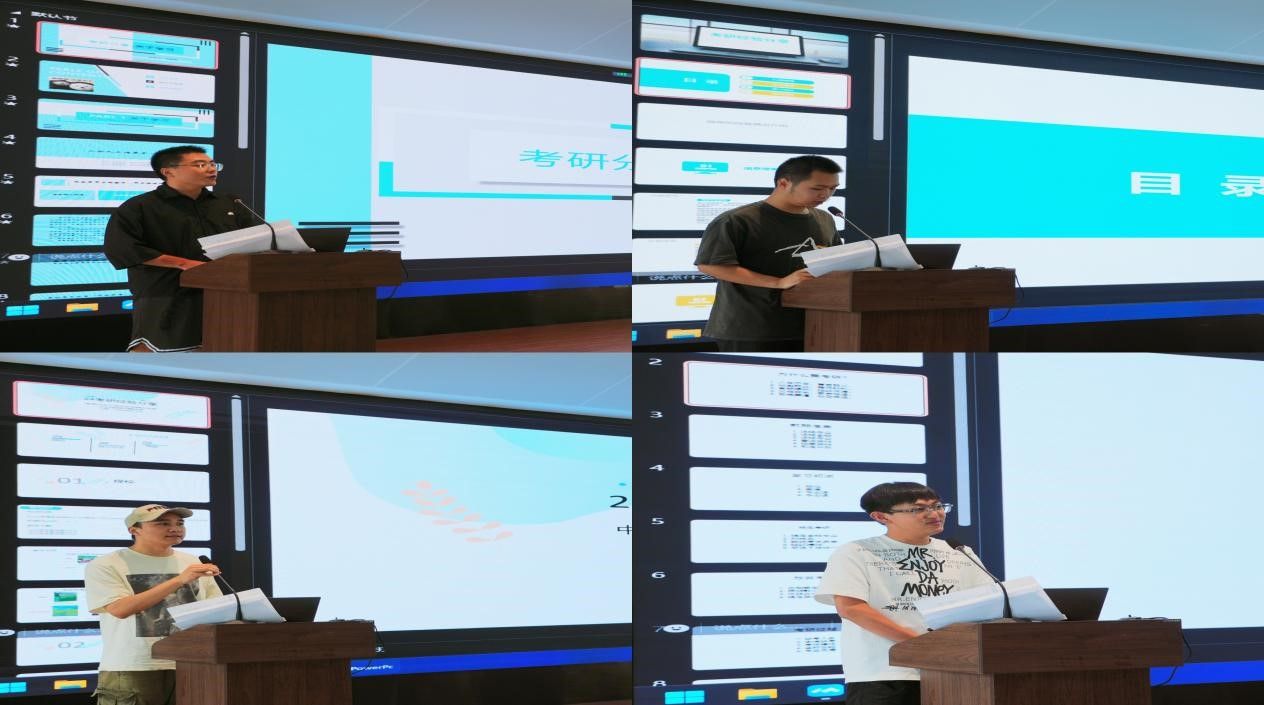 应学生的要求,学院还组织了经验分享环节。2020级优秀学生代表尹敬彪、王凌鑫、杨自龙、郭星奇同学依次上台,与大家分享了自己的考研学习经验。