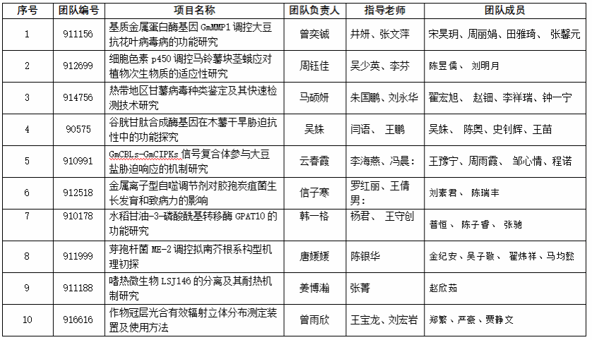 我院进入第九届生命科学竞赛(科学探究类)海南赛区决赛项目名单